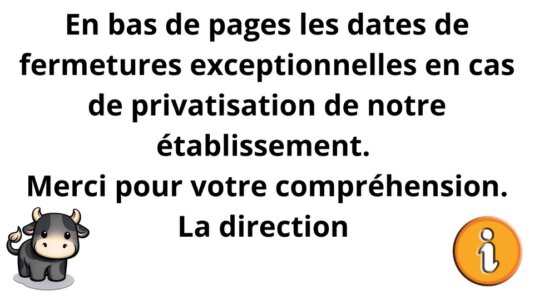 Restaurant privatisé soirées MER 11.02.26